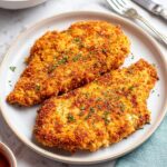 This Air Fryer Parmesan Crusted Chicken recipe features juicy, boneless skinless chicken breasts coated in a crispy parmesan and panko breadcrumb crust. The chicken is flavored with garlic powder, Italian seasoning, paprika, and black pepper, and air fried to golden perfection in just 12 minutes. It’s an easy, flavorful dinner option that’s crispy on the outside and tender inside.