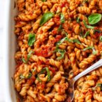 This Baked Feta Pasta recipe combines creamy baked feta cheese with bursting cherry tomatoes and sun-dried tomatoes, tossed with perfectly cooked pasta and fresh basil for an incredibly flavorful and easy Mediterranean-inspired dish. The sauce is rich and tangy with a hint of spice from red pepper flakes, balanced by garlic and herbs, making it a perfect weeknight dinner that comes together effortlessly in the oven.