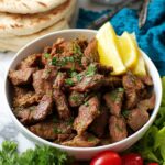 This Beef Shawarma recipe features tender, flavorful strips of marinated strip steak cooked quickly on a griddle. Infused with a rich blend of Middle Eastern spices and aromatics, it's perfect served plain or wrapped in pita with fresh toppings and sauces for an authentic shawarma experience at home.