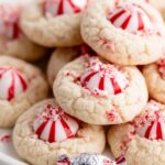 Candy Cane Kiss Cookies are festive, peppermint-flavored treats featuring a soft cookie base with crushed candy canes mixed in and topped with a classic Hershey's Candy Cane Kiss. These cookies combine the delightful crunch of candy canes with a chewy buttery texture, perfect for holiday celebrations.