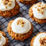 Delicious Carrot Cake Cookies with a soft, chewy texture, packed with shredded carrots, oats, and pecans, all topped with a creamy vanilla-flavored cream cheese frosting. Perfectly spiced with cinnamon, ginger, nutmeg, and cloves, these cookies combine the flavors of a classic carrot cake in a convenient, handheld treat.