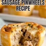Delicious and savory Sausage Pinwheels made with seasoned breakfast sausage, cream cheese, cheddar, and green onions rolled inside flaky crescent roll dough. Perfect for breakfast, brunch, or as a tasty appetizer.