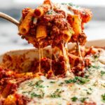 This classic Baked Ziti recipe features tender pasta combined with a rich, flavorful Bolognese sauce, creamy ricotta mixture, and melted mozzarella and Parmesan cheeses. It's an easy make-ahead Italian-American comfort dish perfect for family dinners or gatherings.