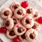 Cherry Blossom Cookies are delightful, buttery treats infused with the sweet flavor of maraschino cherries and a hint of almond extract. These soft cookies are rolled in sugar, baked to perfection, and topped with a classic Hershey’s Kiss, making them a charming and festive dessert perfect for any occasion.