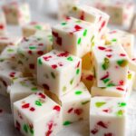 Delightfully festive Christmas Candy made with melted white chocolate, marshmallows, and colorful red and green gumdrops, perfect for holiday snacking or gifting.
