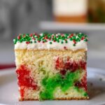- Decorate and serve: Before serving, sprinkle red and green sprinkles or decorations evenly over the top for a festive finish. Slice and enjoy your Christmas Poke Cake!