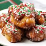 - Cool and Serve: Remove the bundt pan from the oven and let it cool for 10 minutes. Then, place a serving plate over the pan and carefully invert the pan to release the monkey bread onto the plate. Sprinkle with a few additional Christmas sprinkles for decoration. Serve warm and enjoy!