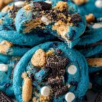 A vibrant and indulgent Cookie Monster Cookie recipe featuring a colorful blue dough packed with white chocolate chips, chopped Chips Ahoy, and Oreos for a fun twist on classic cookies.