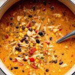 Creamy Chicken Enchilada Soup is a comforting and flavorful soup packed with shredded chicken, fire-roasted tomatoes, black beans, corn, and a blend of Mexican-inspired spices. This hearty and creamy soup is finished with melted cream cheese for richness and is perfect for a cozy meal. It can be customized with toppings like shredded cheese, avocado, and tortilla strips.