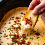 Indulge in the creamy, cheesy goodness of Slow Cooker Crack Chicken Dip, a perfect party snack loaded with shredded chicken, cream cheese, Velveeta, bacon, and ranch seasoning. This irresistible dip comes together easily in a slow cooker and is ideal for gatherings, game days, or festive occasions.
