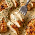 The sauce should be creamy and silky but not too thick—think of it like a velvety gravy that coats the chicken nicely. If it thickens too much, simply whisk in a little more milk or broth to reach your desired consistency.