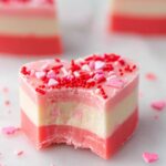 Delight in these adorable Valentine Hearts Fudge made with creamy white chocolate and sweetened condensed milk, layered with vibrant red coloring and topped with festive heart-shaped sprinkles. Perfect for gifting or sharing on Valentine's Day.