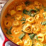 - Cook the tortellini: Add the cheese tortellini and simmer with the lid half-covered for 8 to 10 minutes, or according to package instructions. If using frozen tortellini, cook for an additional 2 minutes.