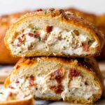 This Chicken Bacon Ranch Stromboli features tender shredded rotisserie chicken, crispy bacon, and creamy ranch dressing wrapped in golden, flaky pizza dough. Easy to prepare and perfect for a satisfying weeknight dinner or a flavorful game-day snack.