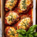 - Garnish and Serve: Sprinkle fresh chopped basil over the chicken parmesan and serve immediately.
