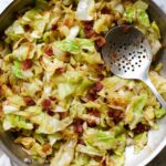 This easy fried cabbage recipe is a flavorful side dish featuring crispy bacon, sautéed onion, and a tangy blend of stone ground mustard and smoked paprika, resulting in buttery soft and slightly caramelized cabbage that's perfect for any meal.