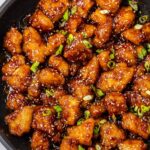 This General Tso’s Chicken recipe features tender chicken thigh pieces coated in crispy cornstarch and coated in a tangy, sweet, and mildly spicy sauce made with soy sauce, rice vinegar, hoisin sauce, and garlic. Perfect for an easy weeknight dinner, this dish combines bold flavors with a satisfying crunch and is garnished with sesame seeds for an authentic touch.