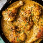 - Simmer chicken in gravy: Return the browned chicken pieces to the pan, coating them with the gravy. Cover the pan and simmer on medium heat for 30 minutes, turning the chicken occasionally to ensure even cooking and coating.