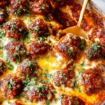 Carefully move your partially baked meatballs into the sauce, turning them to coat every inch. Spread them out evenly in the pan, sprinkle your cheese combo on top, and back into the oven for 8-12 more minutes until the meatballs reach 160°F internally and the cheese bubbles and melts beautifully.
