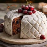 - Decorating (Optional): Roll out marzipan and cover the cooled cake, smoothing pleats carefully with a wet knife. Repeat the process with white fondant. Create a quilted pattern on the sides with a blunt edge and place silver balls at intersections. Dust cherries with icing sugar and top the cake as desired for a festive finish.