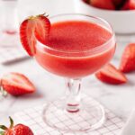 A refreshing and easy-to-make frozen rosé cocktail blended with strawberries, lemon juice, and simple syrup for a perfectly chilled summer drink.
