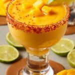 A refreshing and tropical Christmas Frozen Mango Margarita made with frozen mango chunks, blanco tequila, fresh lime juice, and a touch of guava jelly or sweetener. Perfectly blended and served in tajín-rimmed glasses, this festive cocktail offers a delightful balance of sweet, tangy, and spicy flavors ideal for holiday celebrations.