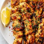After all your skewers are cooked, you might notice a little pool of leftover garlic parmesan butter at the bottom of the air fryer—it’s liquid gold! Pour it over your cooked chicken, sprinkle with fresh chopped parsley and a little extra parmesan if you have it, and don’t forget a few lemon wedges on the side for squeezing.