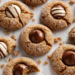 Delight in the classic festive treat of Gingerbread Blossoms, chewy gingerbread cookies rolled in sparkling sugar and topped with a melty Hershey’s Kiss. Perfect for holiday baking and sharing.