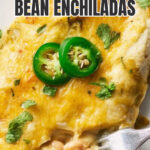 These Green Chili White Bean Enchiladas are a flavorful vegetarian dish featuring creamy cannellini beans, tangy green chiles, and melted Mexican cheese blend wrapped in warm corn tortillas and baked in green enchilada sauce. Perfect for a comforting and satisfying meal.