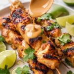 - Serve: Remove the skewers from the grill and serve immediately drizzled with the creamy peanut sauce or use the sauce as a dipping condiment on the side.