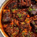 This Guinness Braised Short Ribs recipe features tender, fall-off-the-bone beef slow-cooked in rich Guinness stout and aromatic herbs. Perfect for a cozy dinner, it combines hearty root vegetables, smoky undertones from liquid smoke, and a robust sauce best served over creamy mashed potatoes.