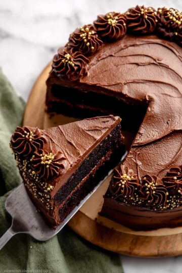 Store any leftover Guinness Chocolate Cake tightly covered in the refrigerator for up to 5 days. A cake carrier or an airtight container works best to keep the frosting fresh and prevent the cake from drying out. Before serving leftovers, you can let slices sit at room temperature for about 20 minutes for the best flavor and texture.