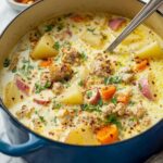 This comforting Sausage Potato Soup combines savory Italian sausage with tender red potatoes, aromatic vegetables, and a creamy broth. Enhanced with subtle seasonings like dried basil, parsley, and a touch of mustard powder, it’s perfect for a hearty meal any time of year. The soup can be made on the stovetop or in a Crock Pot, making it versatile and easy to prepare.