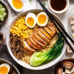 This homemade chicken ramen recipe features tender seared chicken thighs, fresh bok choy, sautéed shiitake mushrooms, and perfectly cooked eggs served over al dente instant ramen noodles in a flavorful homemade broth enhanced with dashi powder or miso paste. Finished with corn, sesame oil, toasted sesame seeds, and green onions, this comforting bowl blends savory Asian flavors with simple techniques for a delicious and satisfying meal.