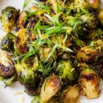 - Garnish and Serve: Garnish the glazed Brussels sprouts with chopped green onions and lemon zest for a fresh, zesty finish. Serve immediately and enjoy!
