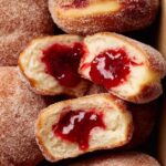 Delicious homemade jelly-filled donuts made with a tender, fluffy dough enhanced by a tangzhong starter. These classic American breakfast treats are fried to golden perfection and coated in sugar before being filled with sweet raspberry jelly.