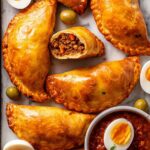 Delicious Brazilian-style beef empanadas with a flaky shortcrust pastry and a flavorful filling of beef, chorizo, potatoes, and aromatic spices. These empanadas are perfect as appetizers or main courses and are baked to a golden, crispy finish. Served hot with a homemade empanada sauce or your favorite dipping sauces, they capture vibrant South American flavors in every bite.