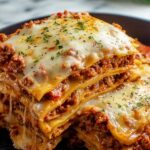 This Keto Low Carb Lasagna features a unique cheese dough lasagna noodle made from cream cheese, mozzarella, and eggs, layered with a savory meat sauce of ground beef, onion, and no sugar added marinara. Baked to bubbly perfection, it’s a delicious low-carb alternative to traditional lasagna that fits well into ketogenic diets.