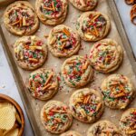 Kitchen Sink Cookies are a delightful and indulgent treat packed with a variety of mix-ins including chocolate chips, toffee bits, potato chips, pretzels, and festive holiday jimmies. These cookies boast a perfect balance of sweet, salty, and crunchy textures, baked to golden perfection with a soft and chewy center. Ideal for holiday celebrations or anytime you crave a fun, flavor-packed cookie.