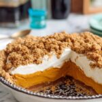Milk Bar Pumpkin Pie features a flaky refrigerated pie crust filled with a silky smooth pumpkin ganache made from roasted pumpkin puree and white chocolate. Topped with luscious caramel, a crunchy oat streusel, and fresh whipped Chantilly cream, this dessert offers a sophisticated twist on classic pumpkin pie, perfect for festive occasions or cozy gatherings.