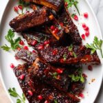 - Glaze the ribs: Once cooked, immediately drizzle the ribs with balsamic glaze while still warm. Garnish with pomegranate arils if desired. Serve the ribs with your favorite side dishes and enjoy!