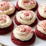 Deliciously soft and festive red velvet cookies with a creamy eggnog cream cheese frosting, perfect for holiday celebrations or any special occasion. These cookies boast a rich cocoa flavor with a classic red hue, enhanced by a hint of peppermint and cinnamon-spiced frosting.