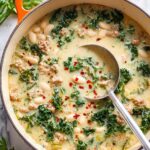 - Add Beans and Kale: Stir in the drained Cannellini beans and simmer for an additional 10 minutes. Add the chopped kale and cook until wilted, about 3-5 minutes.