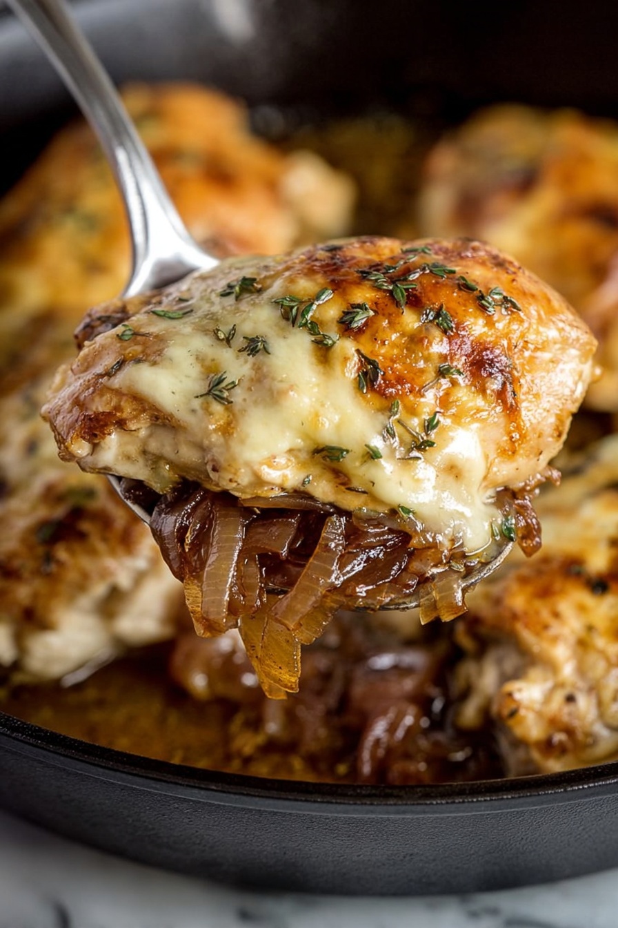 - Deep, caramelized flavor: Slowly sautéed onions bring that iconic French onion soup taste alive in a chicken dish.