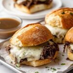 - Serve: Serve the sandwiches hot with warm au jus from the slow cooker on the side for dipping.