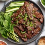 A super easy and flavorful Korean Beef Bulgogi recipe featuring thin, tender slices of marinated rib eye steak cooked quickly to perfection. Perfect for a delicious Korean BBQ experience at home.