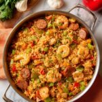 This classic Creole Jambalaya recipe combines smoky andouille sausage, tender chicken, and succulent shrimp with a medley of fresh vegetables and aromatic spices. Simmered with long-grain white rice in a flavorful tomato and chicken broth base, this one-pot dish offers a hearty, comforting meal perfect for any occasion.
