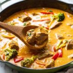 - Finish and serve. Remove from heat and adjust seasoning if needed. Serve the Thai beef curry hot with steamed rice or your choice of side.