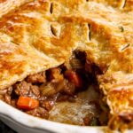 A hearty and traditional Steak and Ale Pie featuring tender stewing beef simmered in ale and beef stock, encased in a flaky homemade shortcrust pastry. Perfect for a comforting main course with a rich, savory filling and crisp golden crust.