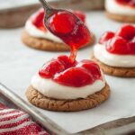 - Add Strawberry Topping: Spoon strawberry pie filling onto the center of each frosted cookie. Optionally, sprinkle with additional graham cracker crumbs for texture. Serve and enjoy!